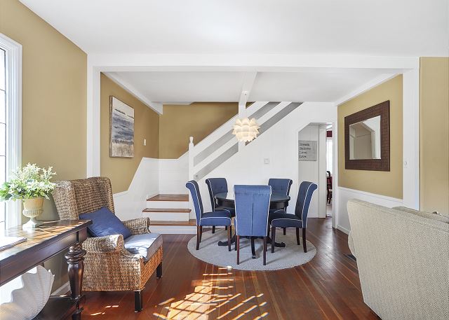 This beach home has everything you need for a relaxing vacation. Located close to the North Bayfront, Ruby Beach, and two blocks from the Ferry for your trip to the Peninsula and the larger beaches. There are 3 bedrooms, the master with a king size bed, 2 guest bedrooms, one with a queen and the other with a set of bunk beds. An additional twin size bed is located in the loft area off the master bedroom. All bedrooms have TVs. The full kitchen has a breakfast dining area, and an interior patio to enjoy your coffee or for barbecuing your dinner. The main living area has a dining area, living room with built-in bench running along the front window overlooking the front porch. Laundry is located in the garage which is fairly large for Balboa standards and can accommodate 2 vehicles. View Availability »