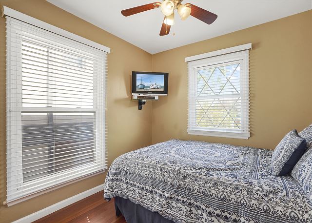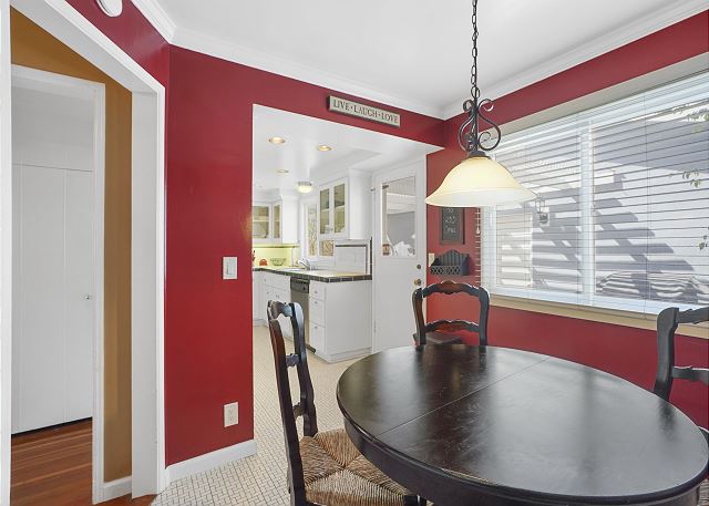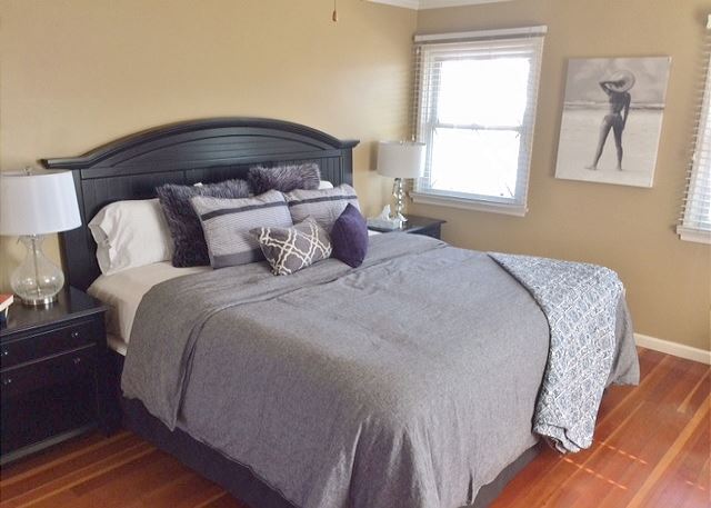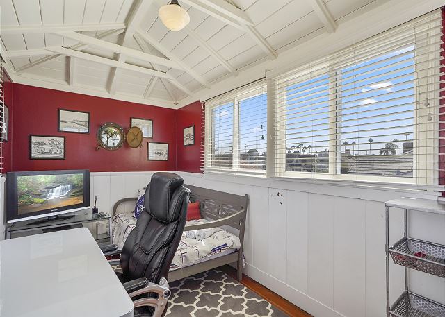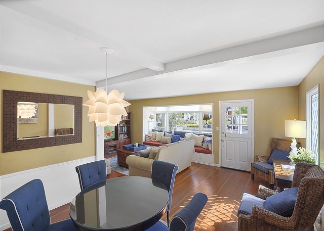 This beach home has everything you need for a relaxing vacation. Located close to the North Bayfront, Ruby Beach, and two blocks from the Ferry for your trip to the Peninsula and the larger beaches. There are 3 bedrooms, the master with a king size bed, 2 guest bedrooms, one with a queen and the other with a set of bunk beds. An additional twin size bed is located in the loft area off the master bedroom. All bedrooms have TVs. The full kitchen has a breakfast dining area, and an interior patio to enjoy your coffee or for barbecuing your dinner. The main living area has a dining area, living room with built-in bench running along the front window overlooking the front porch. Laundry is located in the garage which is fairly large for Balboa standards and can accommodate 2 vehicles. View Availability »
